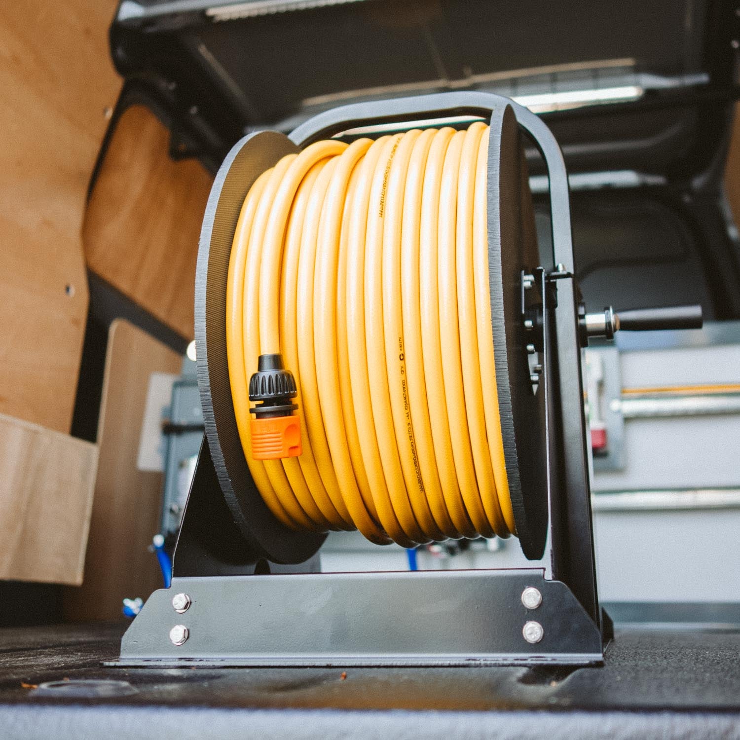 Professional Heavy duty hose reels developed by the Pure Freedom team to be fixed in place in your vehicle.