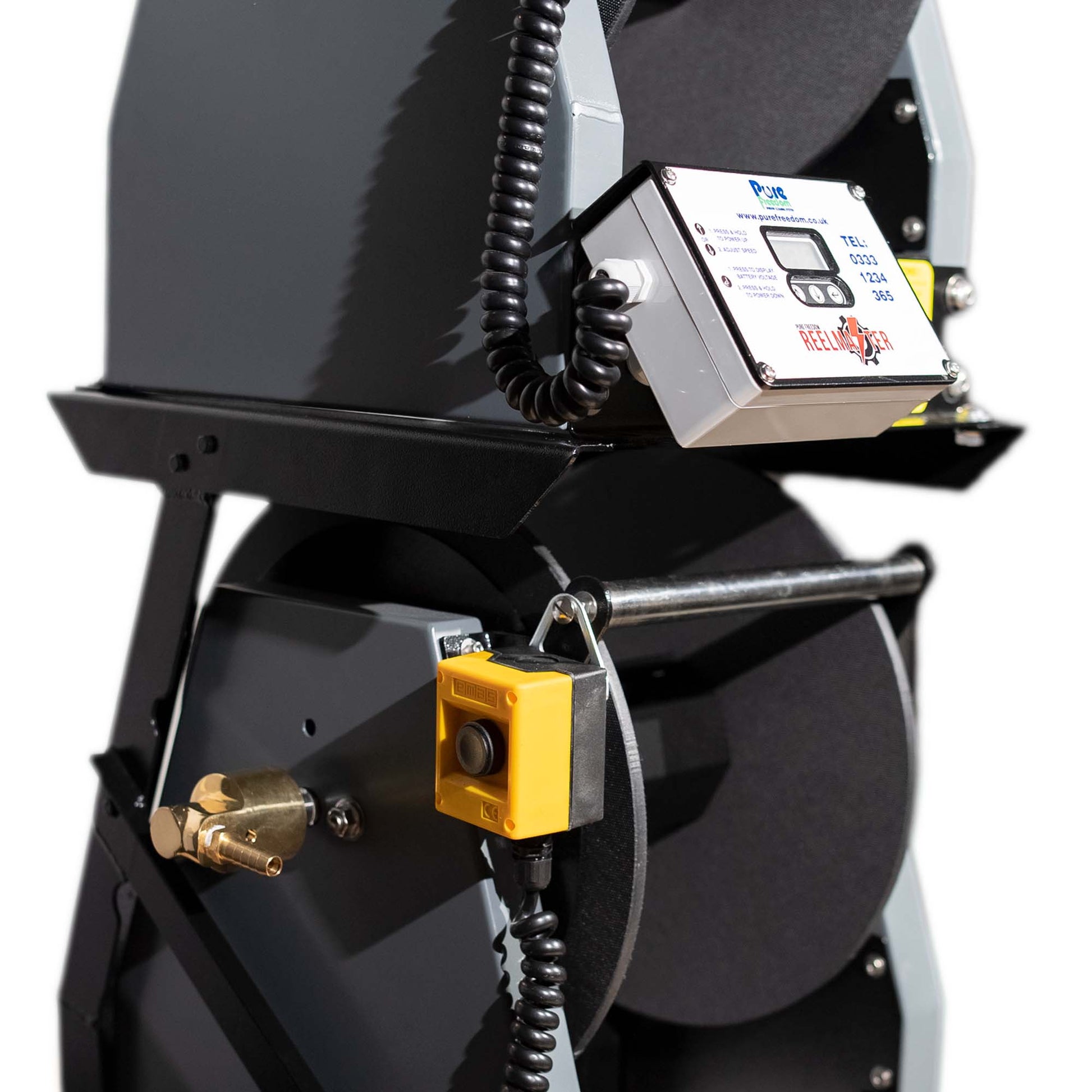 A purpose built Electric Hose Reel, designed & manufactured by our in-house team, specifically for the Window and Exterior Cleaning industry. Suitable for both 6mm & 8mm hose, the chain driven ReelMaster will wind in 100m of hose in approximately 45 seconds. Featuring a state of the art digital controller, the ReelMaster comes with a range of safety and performance controls, including speed adjustment, soft-start function, anti-spooling system & anti-snag detection.